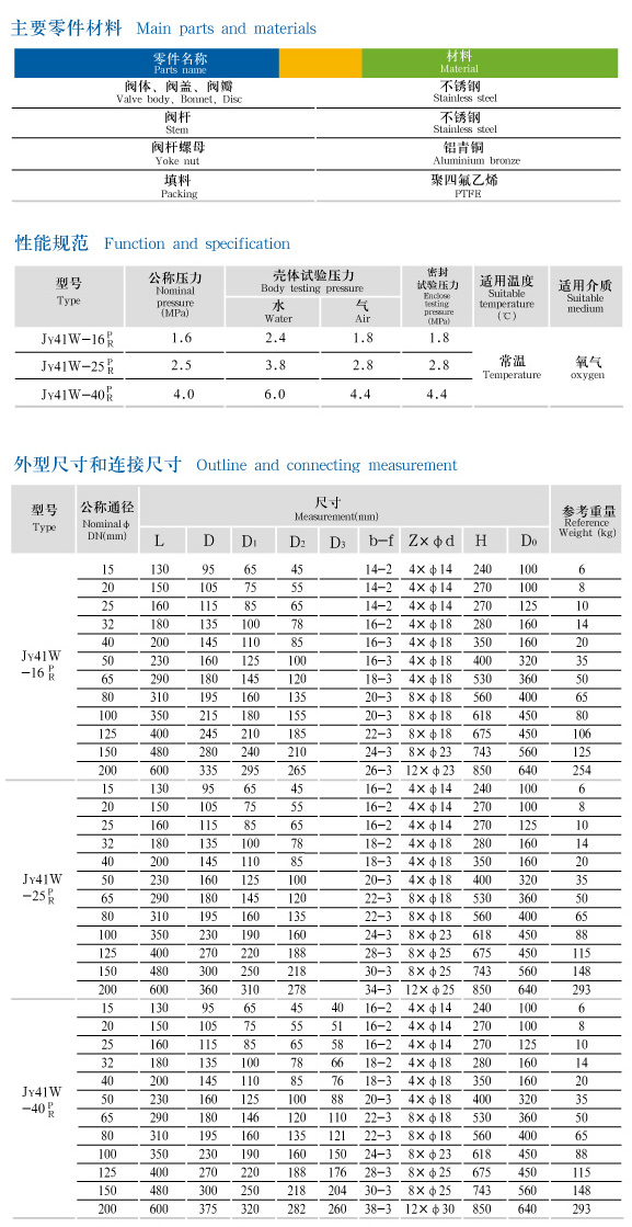 JY41W氧气管路用截止阀