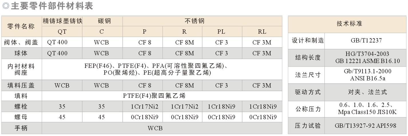 衬氟放料球阀主要零件及材料