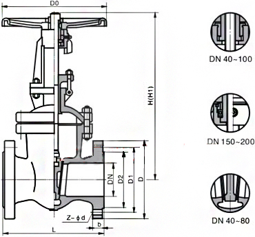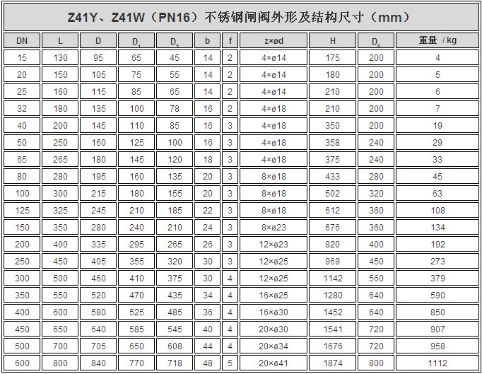 Z41W/Z41Y不锈钢法兰闸阀外形尺寸