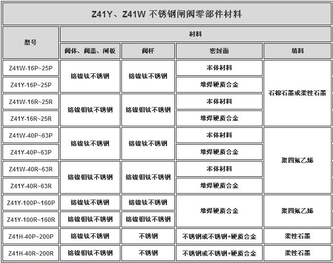 Z41W/Z41Y不锈钢法兰闸阀主要零件材料