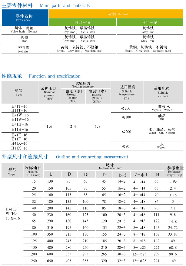 H41T/W/H/F/X-16/16Q型升降式止回阀