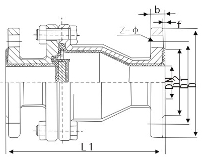 H44F46旋启式衬氟止回阀的阀轴与阀瓣设计为一体,全部衬氟塑料的轴,镶嵌在阀体与阀盖之间形成的特殊凹槽内,启闭灵活,密封可靠。