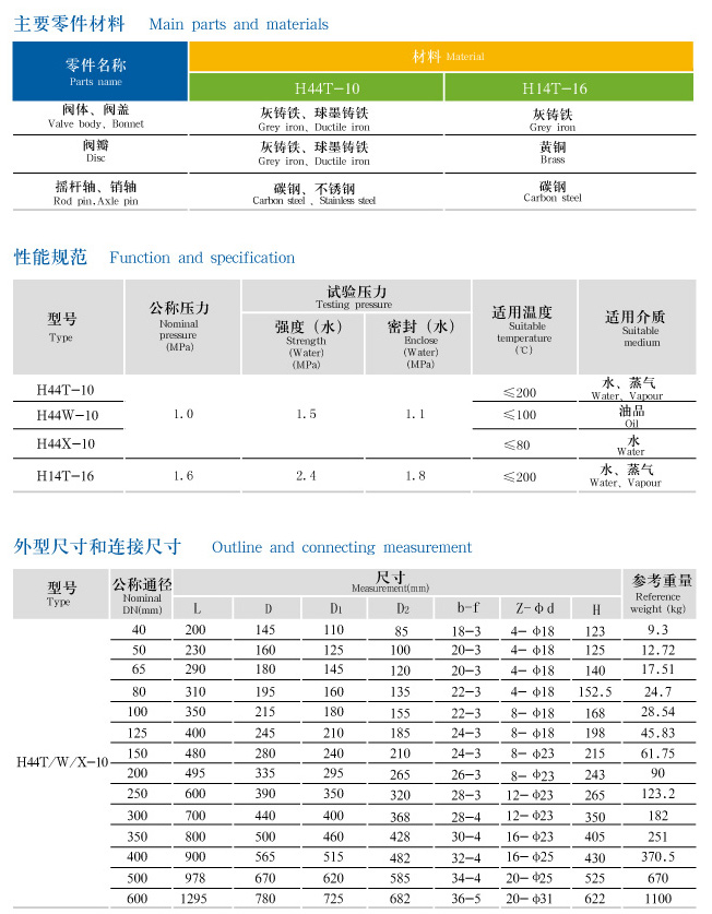 H44T/W/X-10/10Q/16/16Q型旋启式止回阀