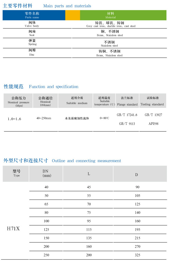 H71X对夹式静音止回阀采用流体型设计,水头损失较??;内部弹簧可加速关闭,达到静音效果;金属对金属确保密封的可靠性;安装空间小,可安装于水泵出口处,能避免产生水锤、水击声和破坏性冲击,达到防止逆流和?;ど璞傅哪康摹9惴河糜诟潘?、消防、建筑、暖通、工业系统。